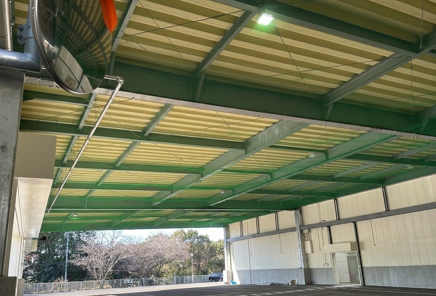 大規模な出荷場や倉庫の天井・梁(はり)部分を隙間なくカバーする防鳥ネットです。