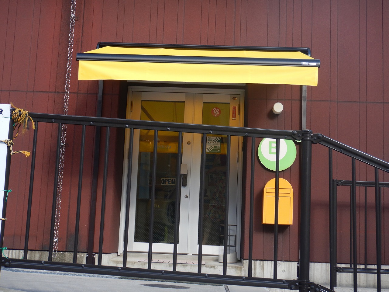 鮮やかなイエローが建物のアクセントになり、遠くからでもお店の場所がすぐにわかります。おしゃれな外観をつくるだけでなく、入り口への雨の吹き込みを防ぎ、お客様が傘を差したり閉じたりするスペースを快適に守ります。